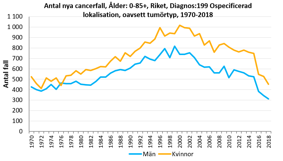 Cancer utan känd primärtumör anges utgöra cirka 1-2 % av all malignitet. Diagnosen är dock dåligt definierad, vilket kan medföra risk för felrapportering (Nicholas Pavlidis et al.; "Statistikdatabasen,").