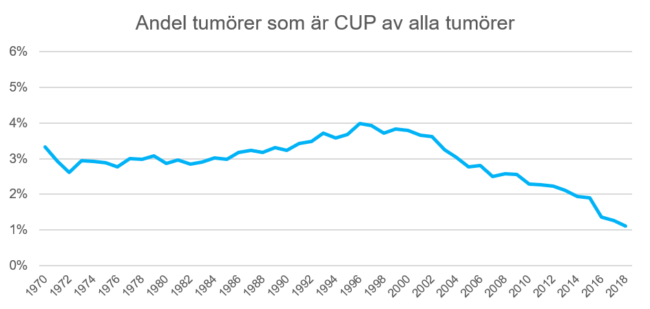 Figur 2. Andel tumörer som är CUP av samtliga tumörer.